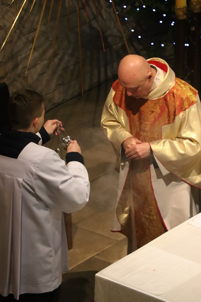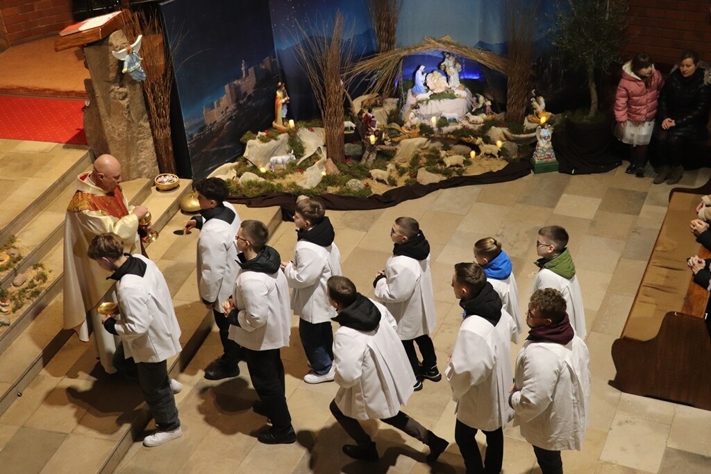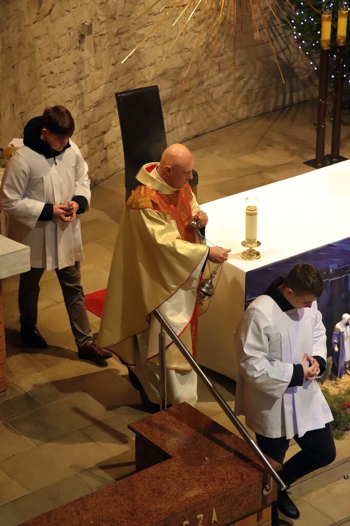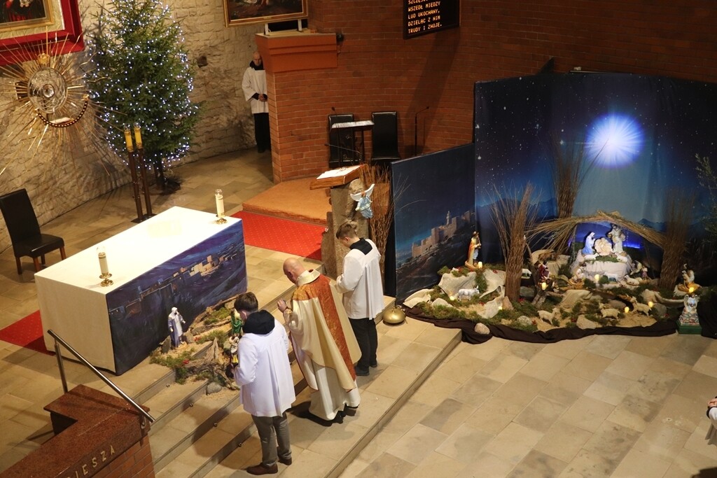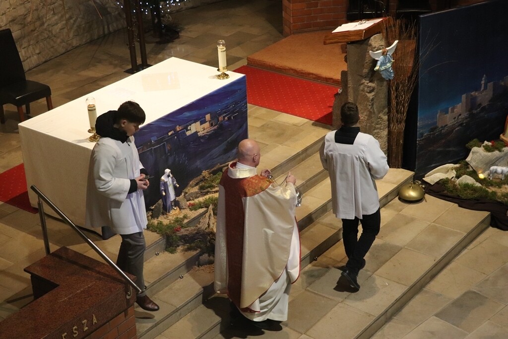 O godz. 22.00 zgromadziliśmy się dzisiaj na Mszy św. pasterskiej, której przewodniczył ks. Jacek Mucha, proboszcz Parafia Św. Józefa Robotnika - Wołyńce. W tej wyjątkowej, świętej nocy radośnie rozpoczęliśmy wspólne świętowanie narodzin Jezusa, który przychodzi, by zamieszkać pośród nas.