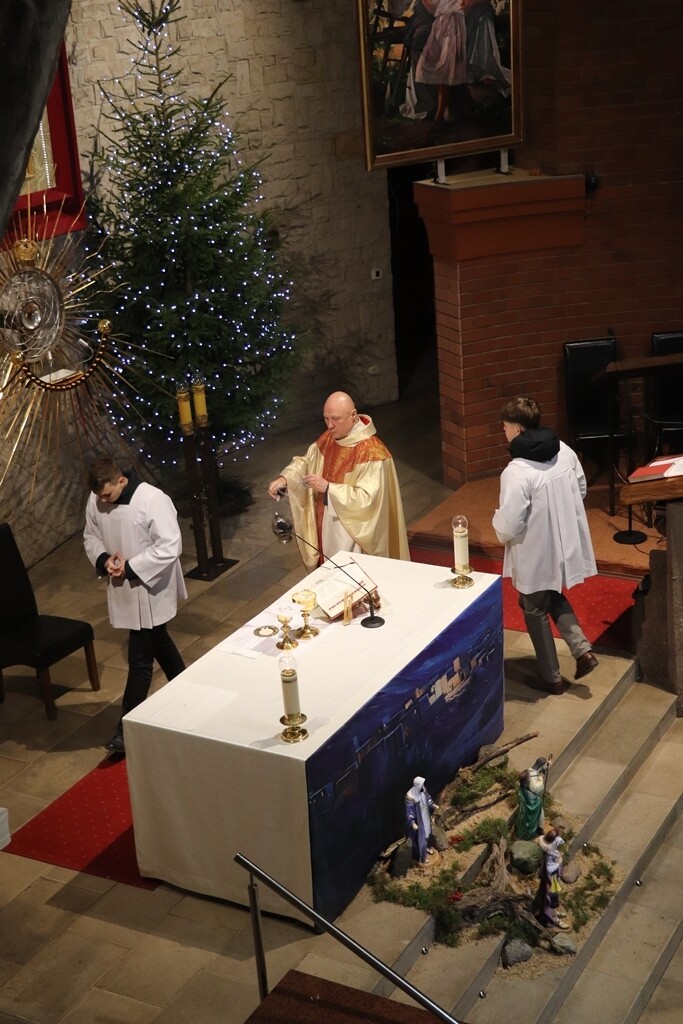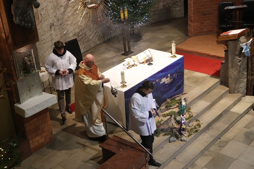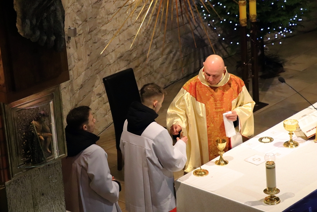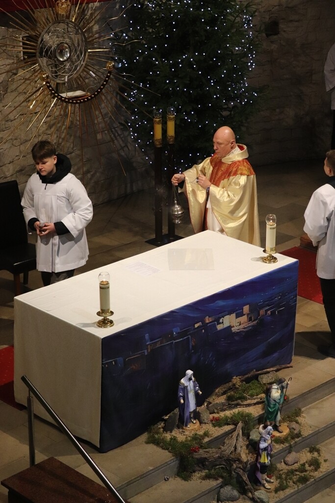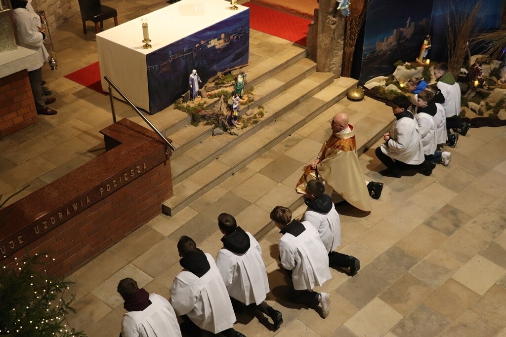 O godz. 22.00 zgromadziliśmy się dzisiaj na Mszy św. pasterskiej, której przewodniczył ks. Jacek Mucha, proboszcz Parafia Św. Józefa Robotnika - Wołyńce. W tej wyjątkowej, świętej nocy radośnie rozpoczęliśmy wspólne świętowanie narodzin Jezusa, który przychodzi, by zamieszkać pośród nas.